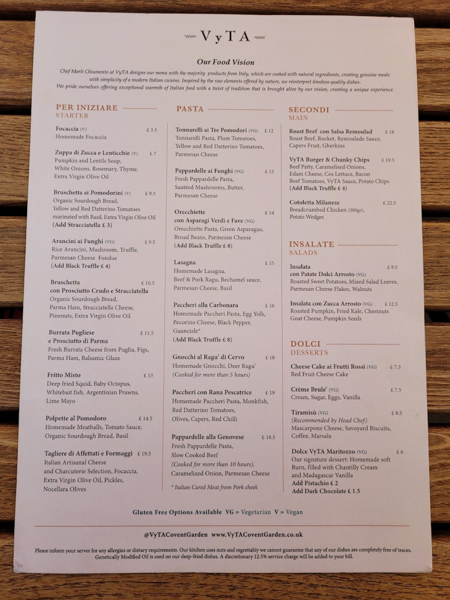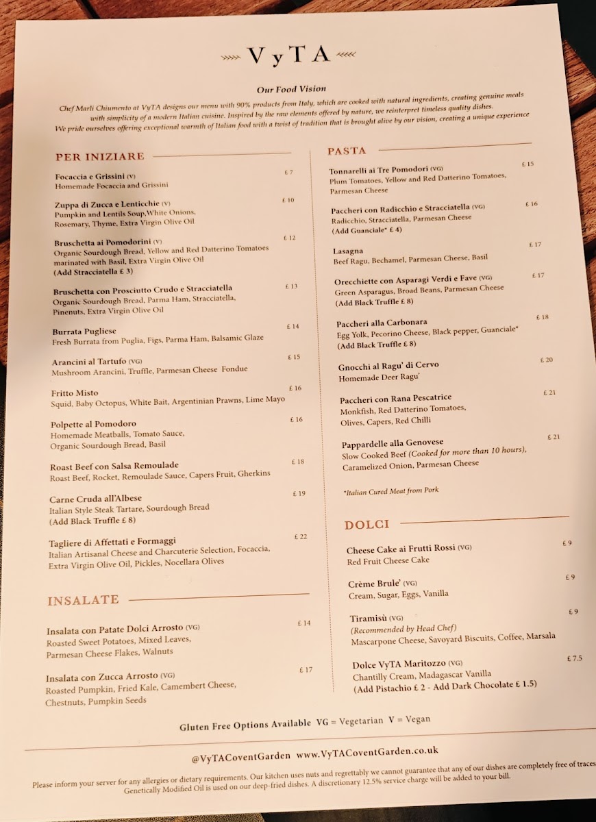 Situated in the heart of Covent Garden, Vyta offers a unique blend of Italian sophistication and modern British charm, making it more than just a dining destination-it’s an experience. The Vyta Covent Garden Menu stands out for its refined interpretation of classic Italian dishes, beautifully presented in an elegant space that overlooks the bustling Piazza.